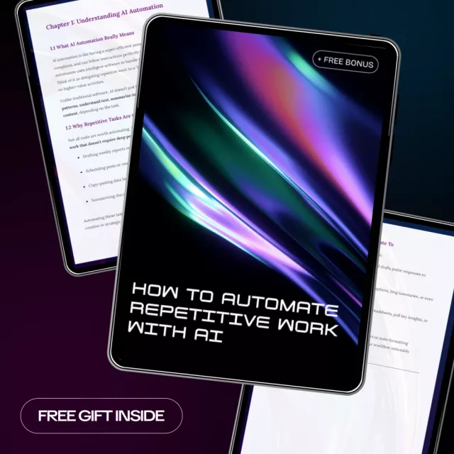 Don’t waste another minute on tedious tasks. Download “How to Automate Repetitive Work with AI” today and start streamlining your work life. Experience the freedom of automation and watch your productivity soar!